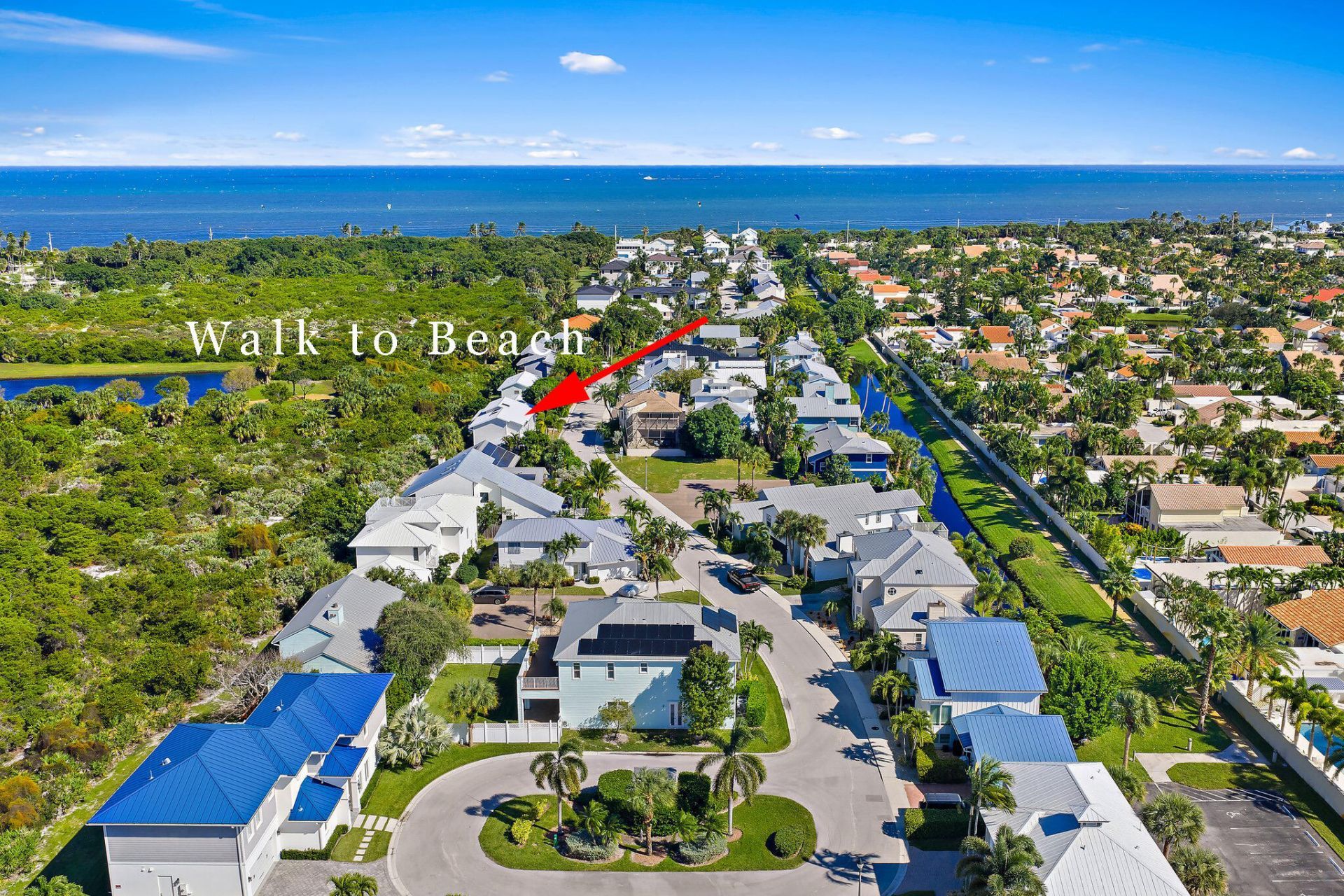 Walk to Beach! Nestled within the exclusive gated Jupiter Beach community of Xanadu by the Sea, this rare three-bedroom plus den home sits on one of the most desirable lots in the neighborhood, overlooking Carlin Park and the preserve beyond. Imagine walking to your favorite beach anytime you please & dog lovers enjoy a walk on the Jupiter Dog Beach. The open-concept kitchen and living area flow effortlessly to a covered wraparound balcony with peaceful park views--perfect for morning coffee ...Walk to Beach! Nestled within the exclusive gated Jupiter Beach community of Xanadu by the Sea, this rare three-bedroom plus den home sits on one of the most desirable lots in the neighborhood, overlooking Carlin Park and the preserve beyond. Imagine walking to your favorite beach anytime you please & dog lovers enjoy a walk on the Jupiter Dog Beach. The open-concept kitchen and living area flow effortlessly to a covered wraparound balcony with peaceful park views--perfect for morning coffee or evening dinners. Walls of sliders, and expansive windows fill the living space with natural light and showcase the surrounding greenery. The kitchen offers a large island, solid wood cabinetry, and generous storage. A private walkway provides direct access to Carlin Park, offering pickleball and tennis courts, an amphitheater, and a fitness trail. Jupiter's best restaurants and shops are just minutes away, and dog-friendly Jupiter Beach is an easy five-minute stroll. New Whole Foods is opening soon for pleasant shopping experience. This is coastal living at its best in one of Jupiter's most sought-after gated communities.The home features three bedrooms, a dedicated office or den, and three full bathrooms. The spacious primary suite includes dual sinks and a walk-in shower with frameless glass door. A private slider opens to the side yard, which is large enough to accommodate a pool. Pavers wrap around the rear of the home for easy maintenance. Wood flooring runs throughout, and the oversized laundry room includes a dog door and access to the fenced yard, ideal for pet owners. The finished garage features an epoxy floor and ample space for bikes, kayaks, and even a motorcycle. Additional highlights include impact-resistant windows, a new standing-seam metal roof, and fresh exterior paint completed in 2024.
